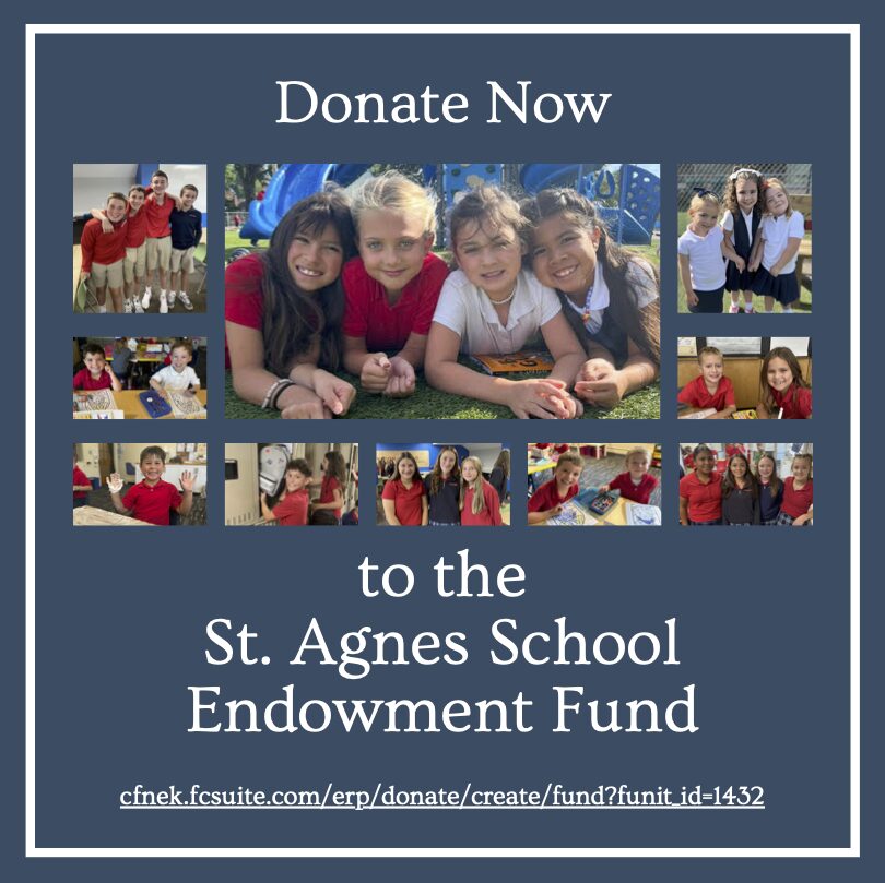 We invite you to prayerfully consider supporting the St. Agnes School Endowment. Together, we can strengthen the mission of Catholic education and ensure that St. Agnes continues to be a place where faith and knowledge meet.