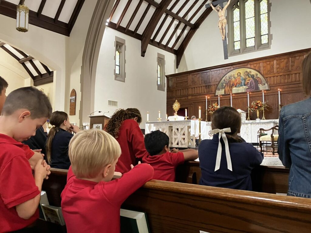 Weekly Mass and Holy Days: The entire school attends Mass every Wednesday and on all Holy Days of Obligation. Students in grades K-8 also have opportunities to host Masses throughout the year, taking on roles like lector, usher, and choir member.